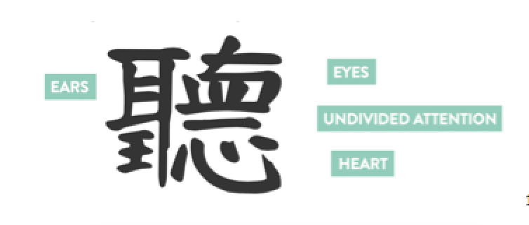 One way to think about it is to consider what is important for good listening. The Chinese character that means “to listen” is made up of smaller characters that reveal what is needed to be a good, active listener. Aren’t these the same elements needed to be attentive in prayer, to be in a loving relationship?
