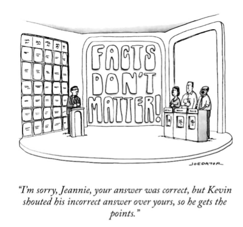 Post Truth = Debate is framed largely by appeals to emotion, which are disconnected from facts.