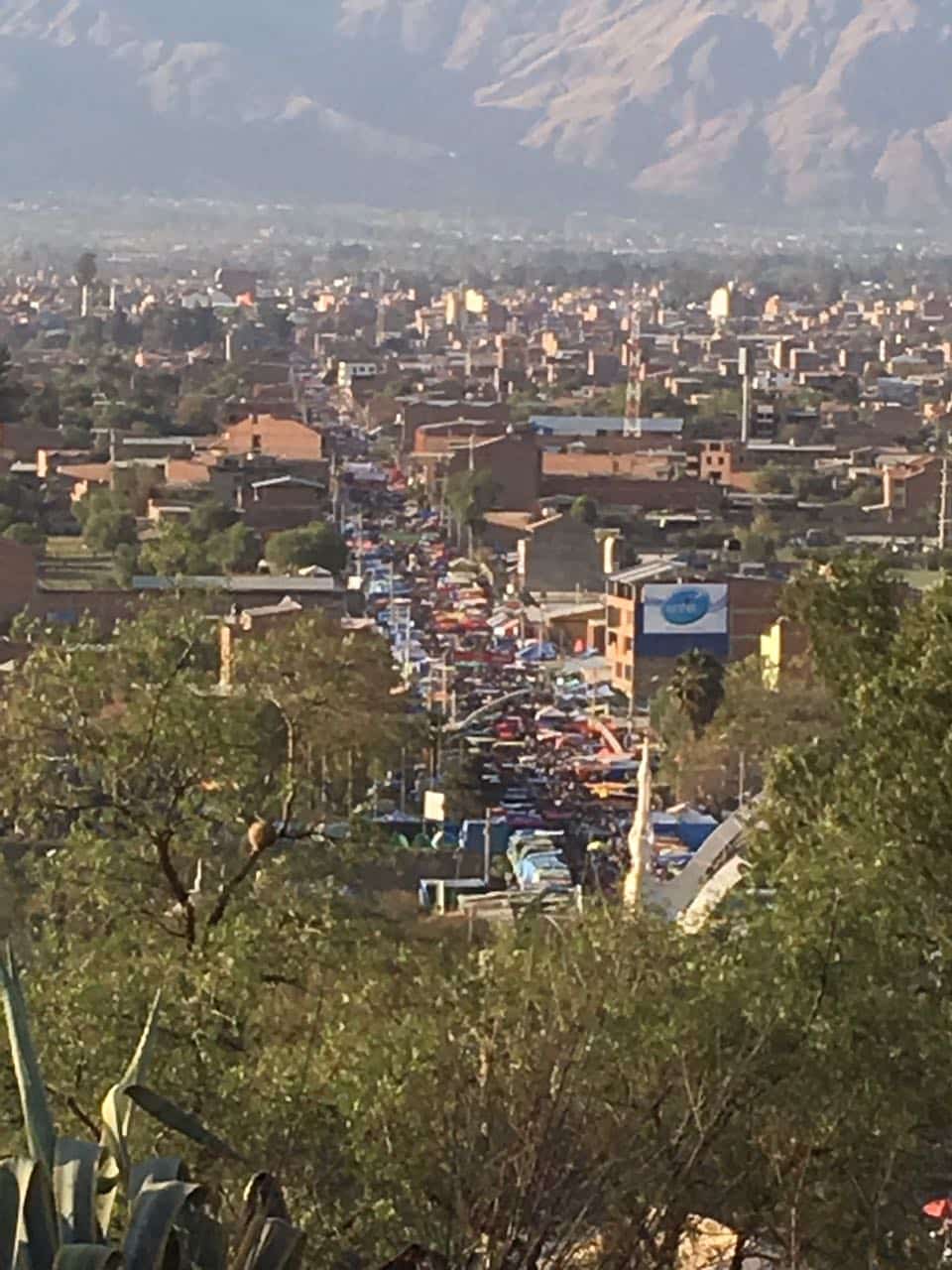 In the morning light, my host Ely found me still in bed. While not Catholic, she understood something about broken dreams, and the power of a mother who appears to the anawim, the poor and lowly ones. She took me to the market and instructed me to buy flowers, the loveliest of calla lilies. Soon afterward, her friend Ángel was driving us to Quillacollo. In the absence of my Christian pilgrims, Ely became my priest, instructing me in the rituals to come. At the pristine chapel in the town plaza, Ely gave me scissors to cut the string which held the bouquet. I would place the flowers one by one, among the countless dozens already at Our Lady’s feet, asking to be freed from all that bound me. Ángel, Ely, and I trudged through the crowds in the city center, past those selling every miniature and replica imaginable – unending rows of plastic babies, cars, houses, frogs spilling coins from their mouths, as well as chickens and roosters, which apparently signified love.