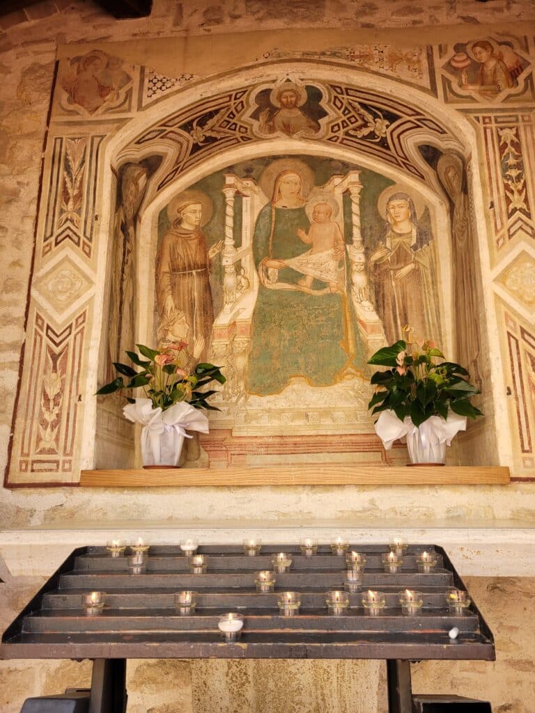 When I touched the walls of the Portiuncula, the tiny chapel where St. Francis and the early friars prayed and shared daily life, my whole body responded. A warmness flooded me, my face began to tremor, my breathing shifted, tears poured from my eyes. I sat on the cold floor and sobbed, then prayed and wrote in my journal. Only when I began to wonder what was causing such emotion to burst out of me did my body shift back to its normal state.