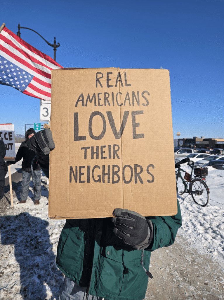 Not all acts are splashy, or noticed. Much is hidden. Yet, each subtle act of love and justice is significant too. So we pick up our crosses and we pack up boxes of food. We collect and distribute supplies. We refuse to show up to work, to school, to shop. There’s Rapid Response protest choirs and those who make music as a form of resistance. Every art collective (such as this one!) that offers beauty and hopeful alternatives to violence is powerful. The Gospel tells us to love and love is messy, so we listen and show up. We check on people who are afraid. We cling to candles and sing and pray at peace vigils. Every act of love reveals the goodness of God.